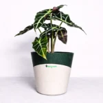 Make a bold style statement with the Alocasia Polly Plant, elegantly placed in a self watering pot. Known for its striking arrow-shaped leaves with deep green tones and contrasting white veins, this plant instantly adds a dramatic and sophisticated touch to any indoor space.