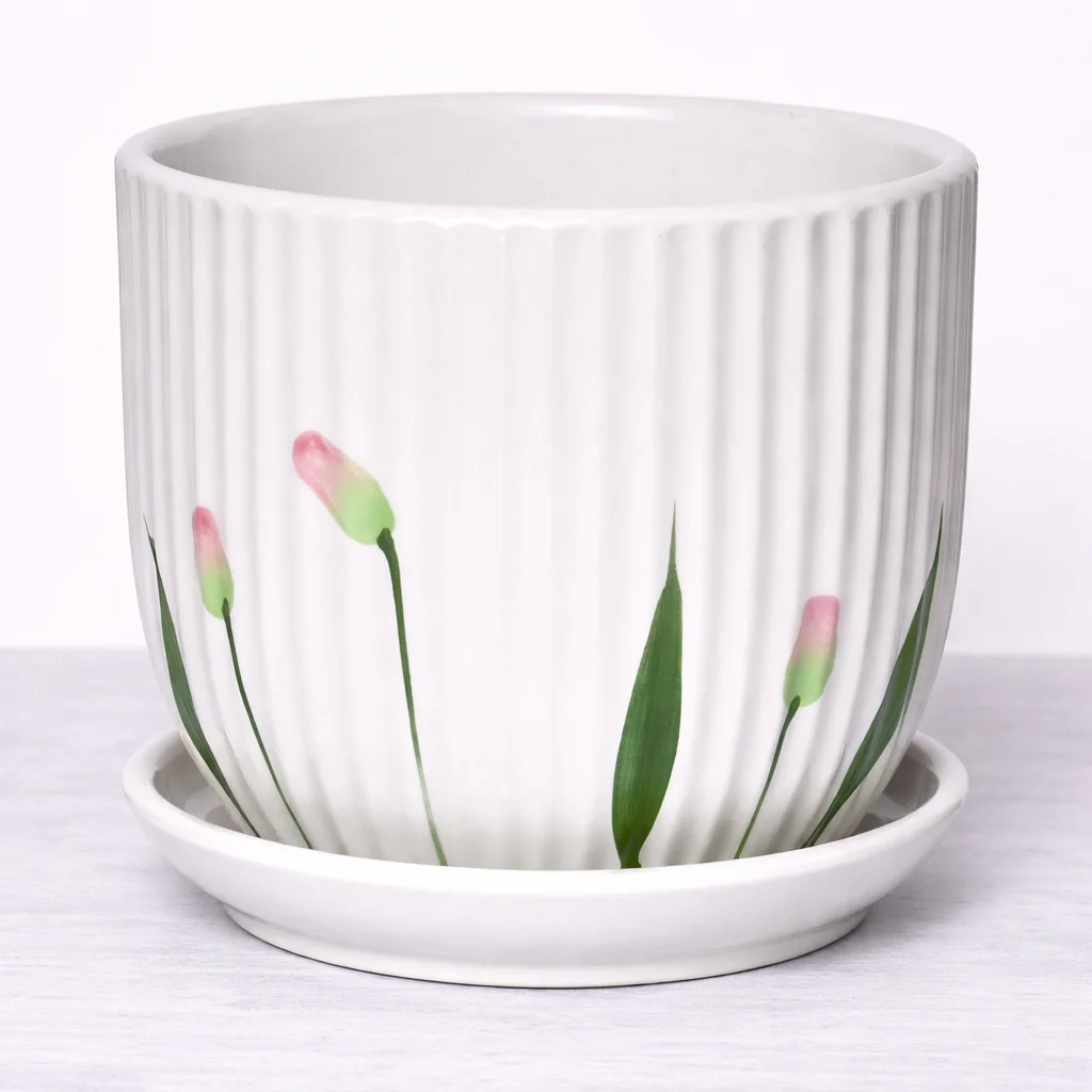 Add a soft, artistic charm to your space with this Ceramic Planter featuring a delicate tulip design. The elegant floral pattern brings a graceful and refreshing touch, making it a perfect choice for enhancing your indoor décor.