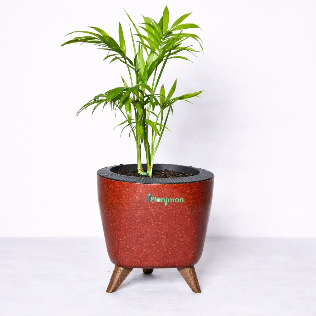 The self-watering pot ensures consistent hydration, reducing maintenance and making plant care simple and convenient—ideal for busy lifestyles or beginners. Known for its adaptability, the Parlor Palm thrives well in indoor conditions with low to moderate light.